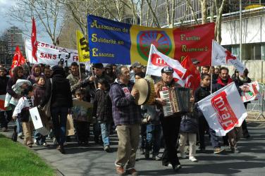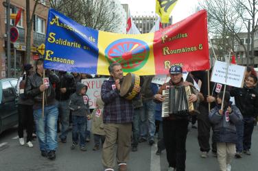 Roms Roumains en manifestation vers la préfecture d'Evry.