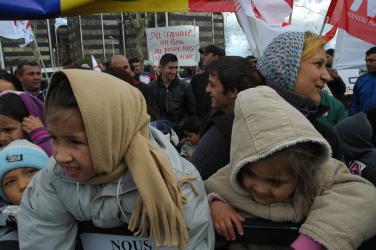 Rroms Roumains devant la préfecture d'Evry 91.