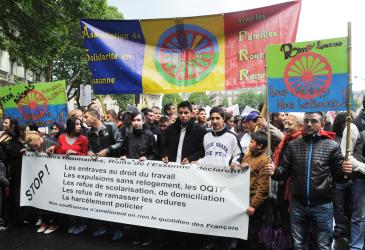 Drapeaux Droits devant! à la manifestation régionale des Roms