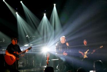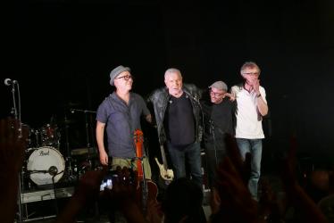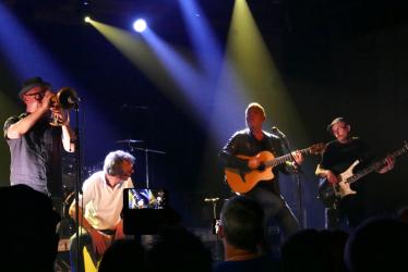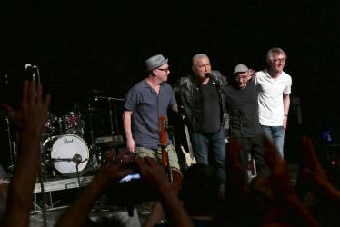 Des photographes autour d'un cheminot qu venait d'allumer un fumigène