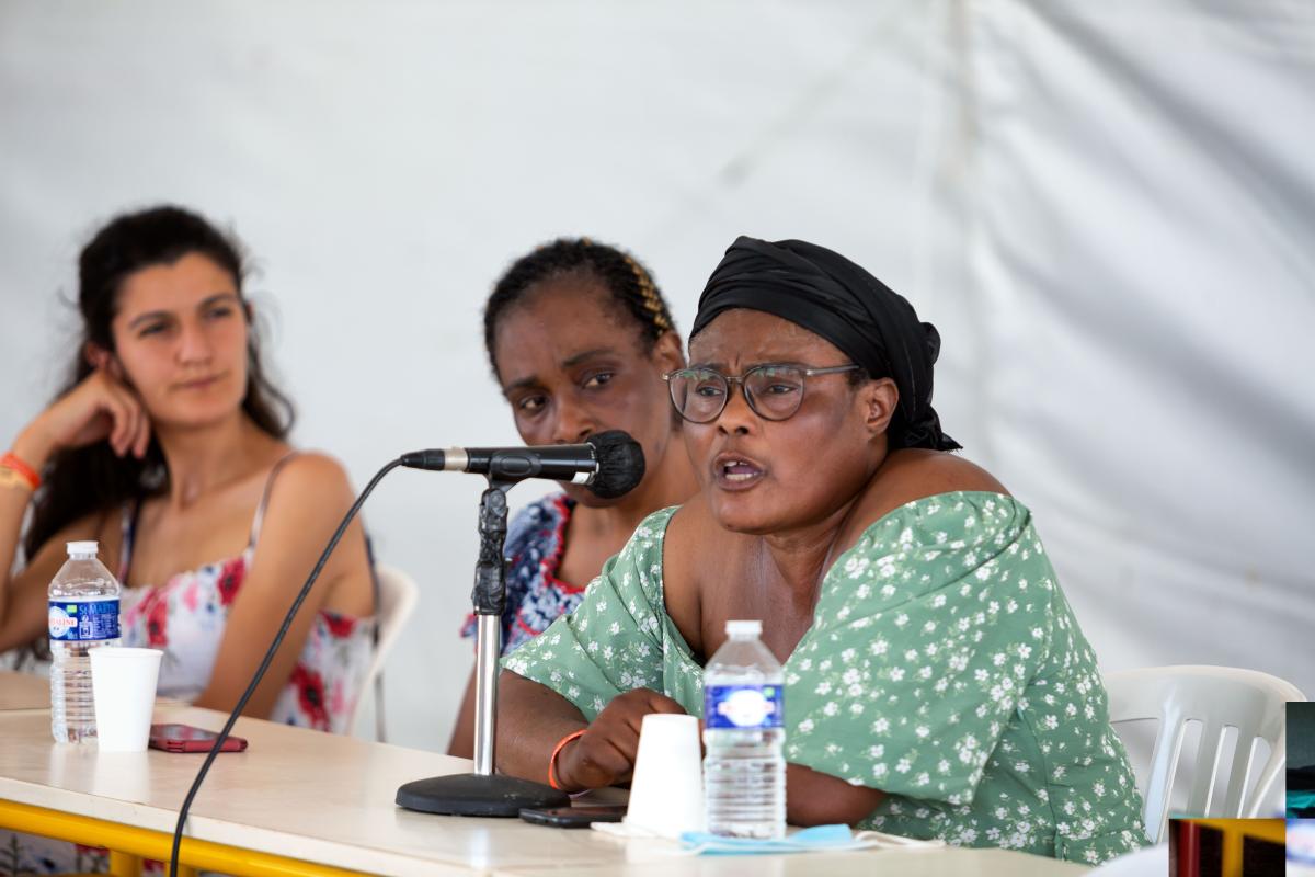 France, Port Leucate, 2021-08-22. Sylvie Kimissa, femme de chambre de l Ibis Batignoles lors de l universite d ete du NPA. Photographie de Martin Noda / Hans Lucas