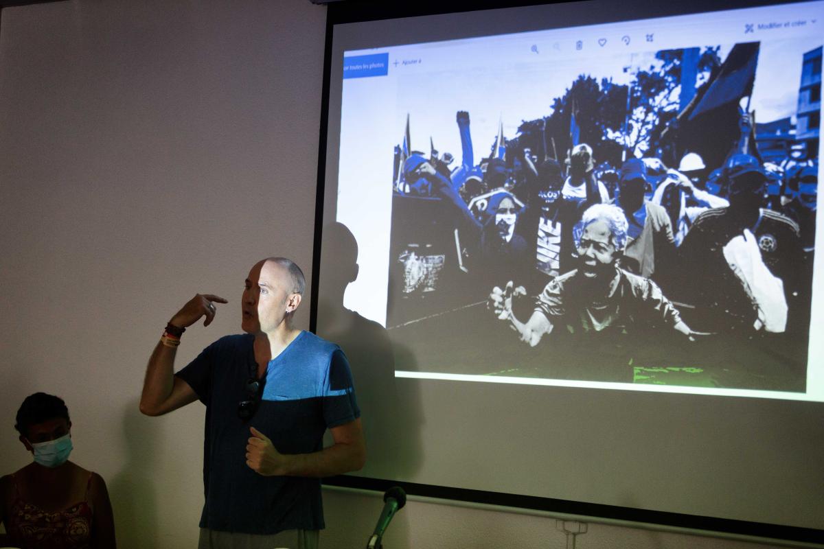 France, Port Leucate, 2021-08-22. Franck Gaudichaud during the summer university of the NPA. Photograph by Martin Noda / Hans Lucas