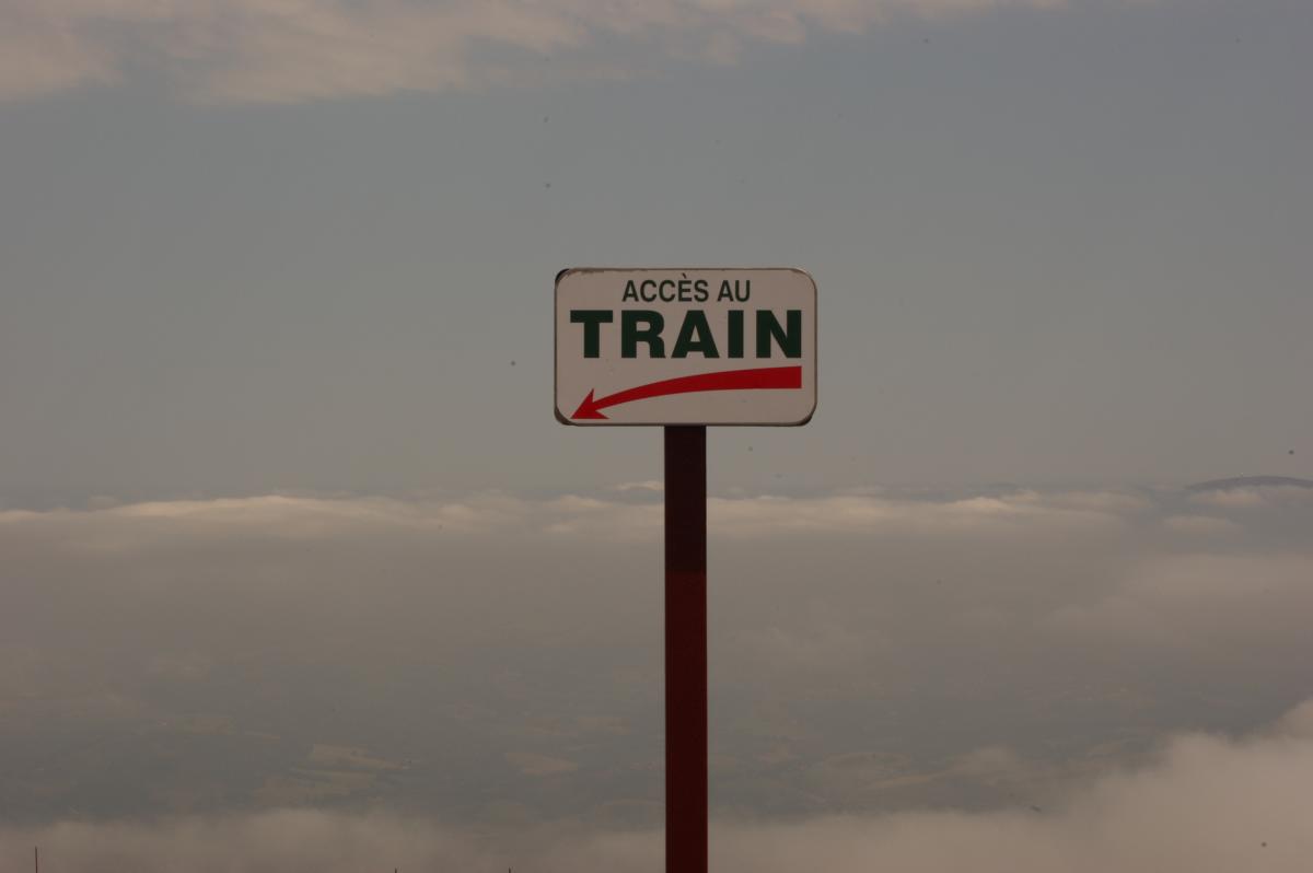 paneaux perdu dans le snuages indiquant où se trouve le train