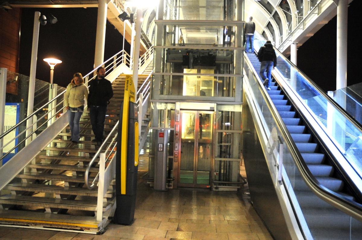 Ascenceur et escalier mécanique gare du Rer C