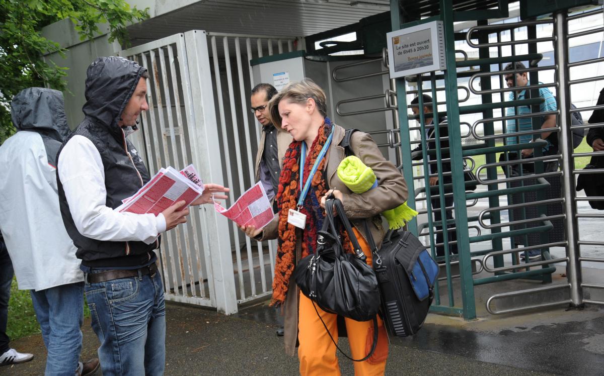 Journée de campagne Européennes dans les Yvelines. Olivier Besancenot devant PSA Poissy, au service psychiatrique de l'Hôpital de Poissy-St.Germain, au Technocentre Renault de Guyancourt, et enfin au dépot de bus Phébus bloqué par les salariés. 20 Mai 2014