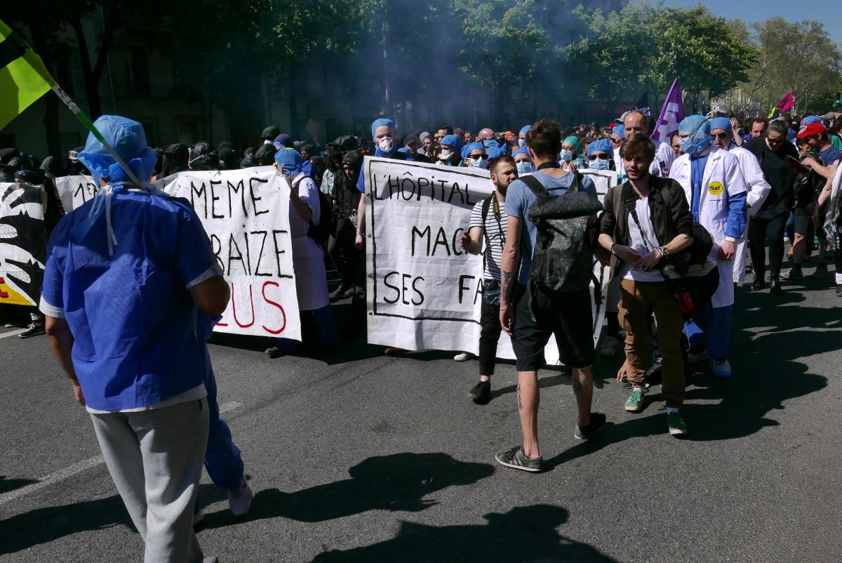 Paris, le 19 avril 2018 manifestation contre la politique de Macron. Cheminots, étudiants, etc...