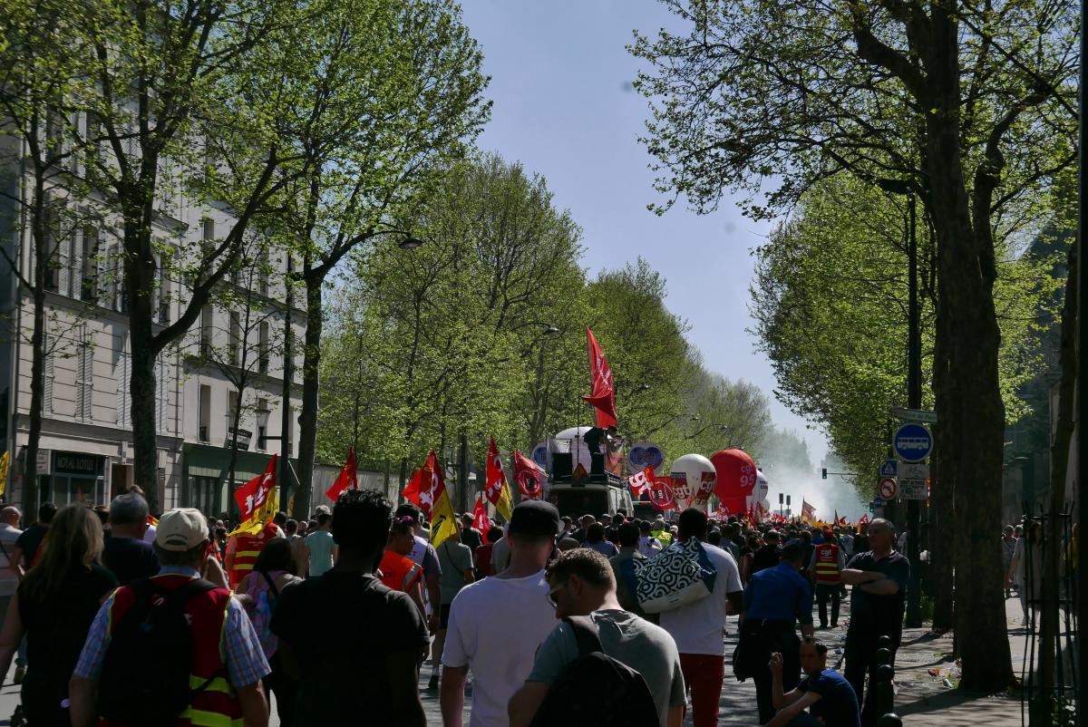 Paris, le 19 avril 2018 manifestation contre la politique de Macron. Cheminots, étudiants, etc...