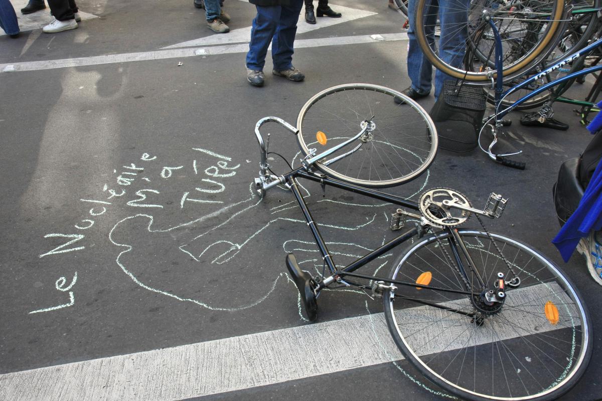 la trace d'un cycliste sur le sol le nucléaire m'a tué