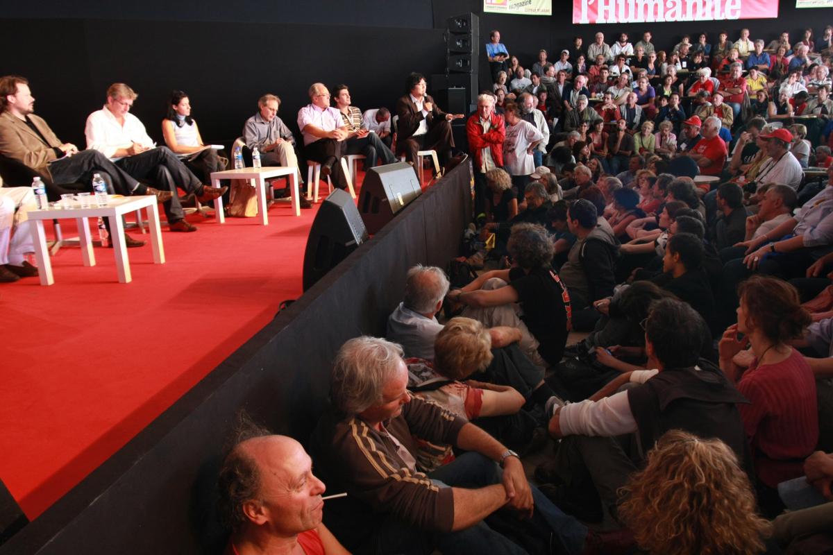 12 septembre 2009 fête de l'Humanité. Débat entre les représentants des partis de gauche et des représentants syndicaux à l'Agora de l'humanité. FETE DE L'HUMANITE/2009/09/12/JMB
