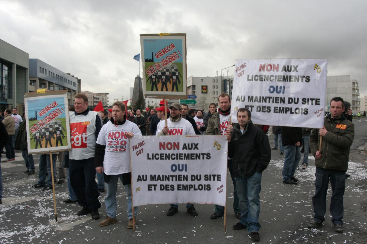 les salariés des imprimeries de Lille et de Torcy du goupe QUEBECOR ont manifesté le lundi 8 aout 2007 contre la menace de liquidation de leurs unités de production. 150 salariés sont venus de Lille soutenir les salariés de Torcy; Après une AG dans l'usine de Torcy(77) ils sont allés occuper le siège du groupe situé non loin de là à Thibault (77) puis ils se sont rendus devant le tribunal de commerce de Meaux. Le tribunal a donné un délai supplémentaire de 2 mois à l'unité de production de Torcy (JdC imprimerie). L'imprimerie de Lille,elle, doit fermer avant le 30 janvier. Un plan social est en cours de négociation.