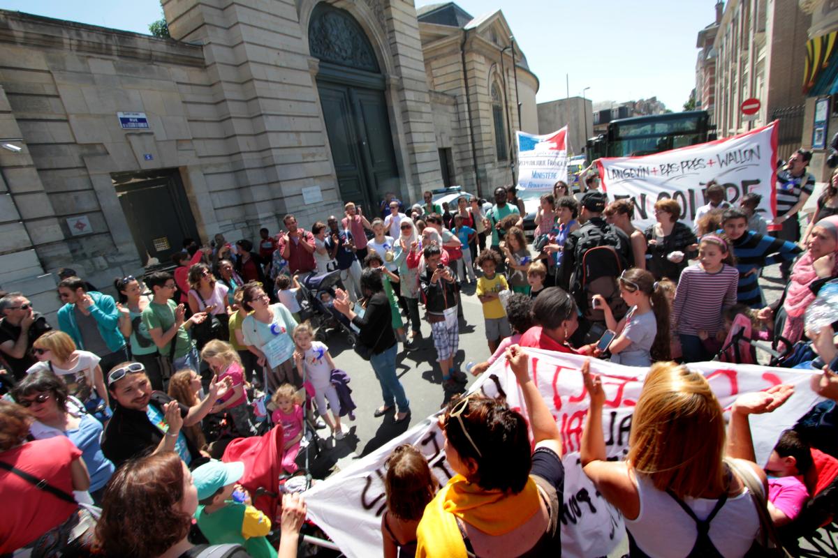 Saint-Denis, le 6 juin 2015, manifestation des enseignants et des parents d'élèves pour une école de qualité. Ils pénètrent dans la cour de l'école de la Légion d'Honneur, école publique de prestige, aux moyens sabs commune mesure avec ceux des écoles de Saint-Denis