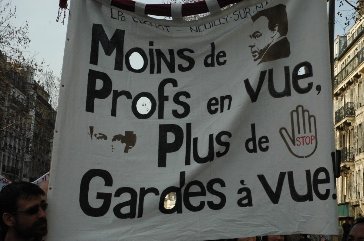 Banderole Moins de Profs en vue plus de gardes à vues.