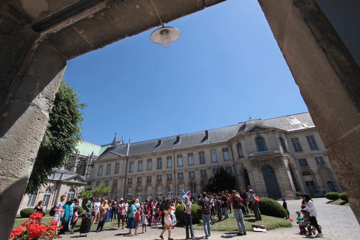 Saint-Denis, le 6 juin 2015, manifestation des enseignants et des parents d'élèves pour une école de qualité. Ils pénètrent dans la cour de l'école de la Légion d'Honneur, école publique de prestige, aux moyens sabs commune mesure avec ceux des écoles de Saint-Denis