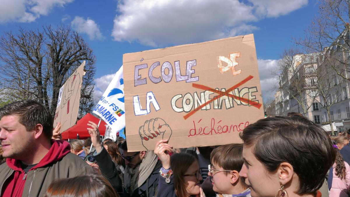 Paris, le 19 mars 2019 manifestation à l'occasion de la journée nationale de mobilisation interprofessionnelle. Les salariéEs de l'Education Nationale étaient fortement mobilisés contre la réforme Blanquer.