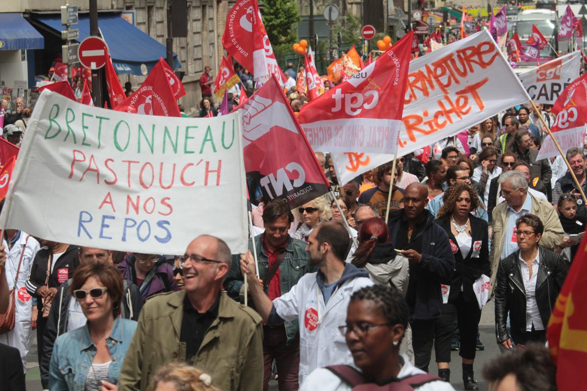 Paris, le 28 mai 2015 manifestation des salariéEs de l'AP-HP en grève contre le projet de Martin Hirsch de remise en cause des RTT