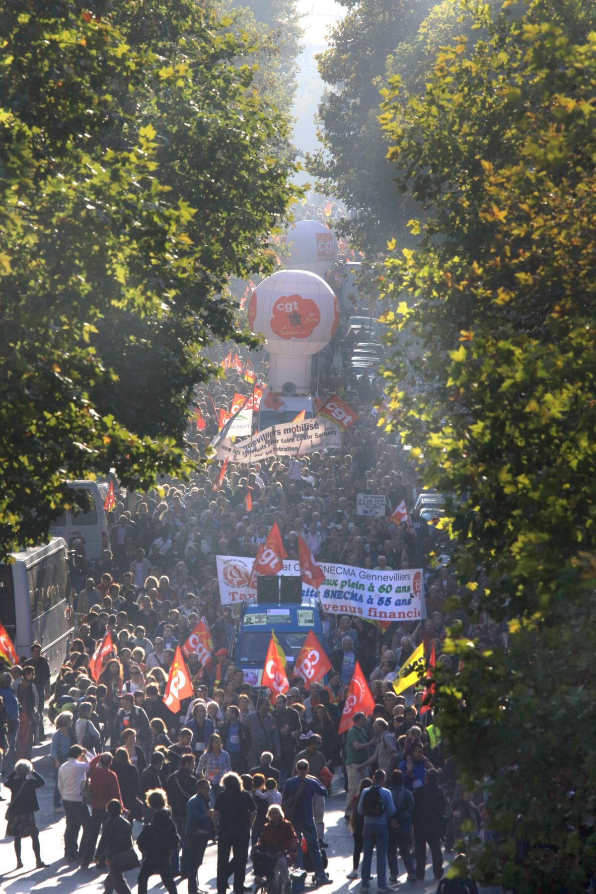 Paris, le mardi 12 octobre 2010, manifestation pour la défense des retraites, de Montparnasse à la Bastille. Deux cortèges.