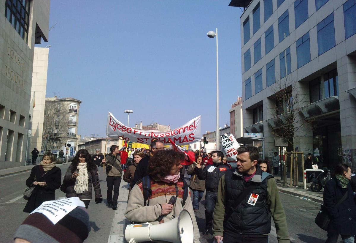 Marseille le 12.03.2010: Grève et manifestation nationale a 10h30 départ de lInspection Académique . LES CONSEQUENCES DESASTREUSES DES REFORMES CHATEL