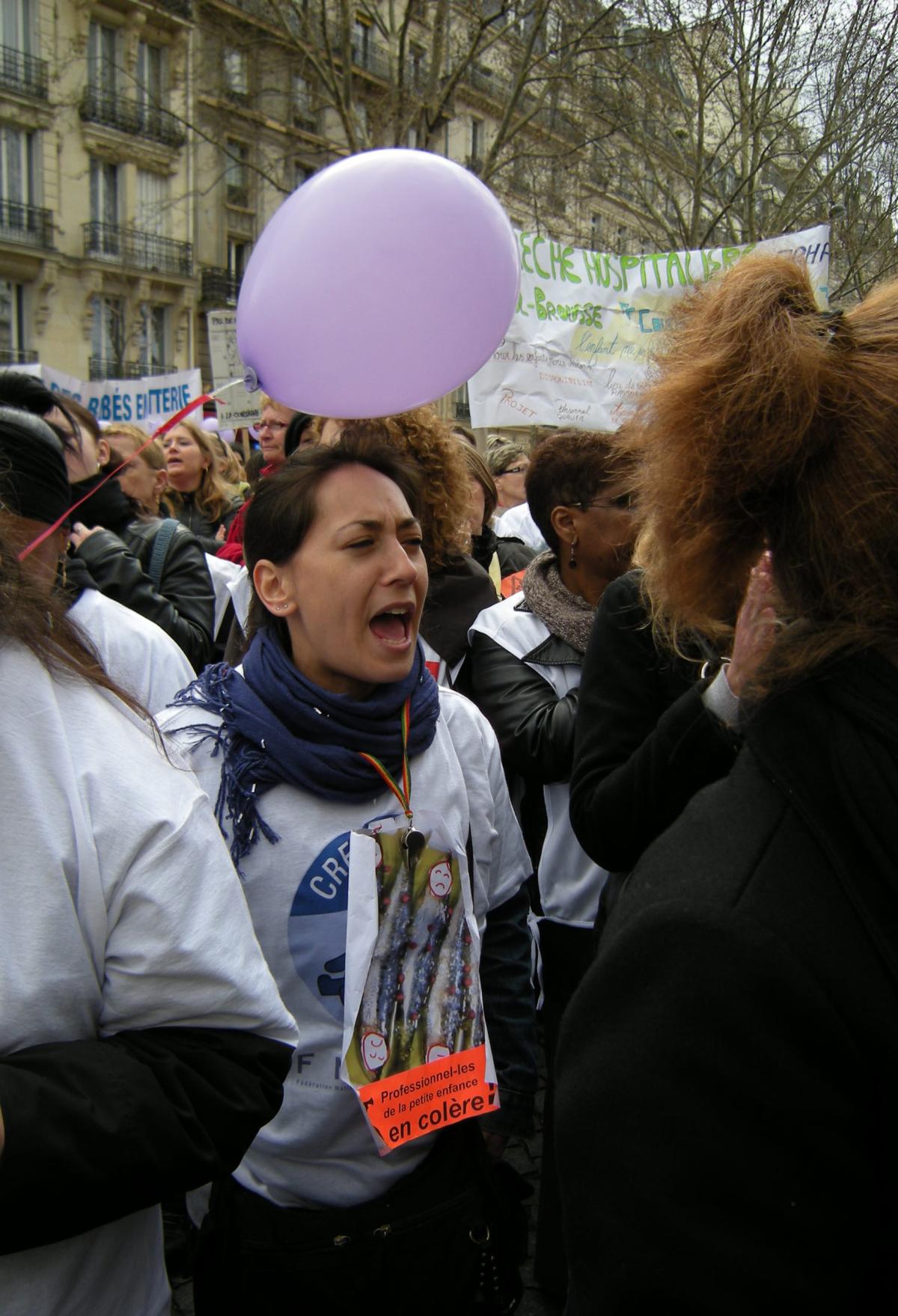 Manifestante en colère en défense des crèches