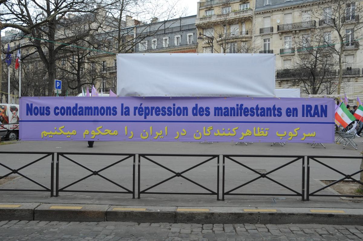 banderole nous condamnons la répréssion des manifestants en Iran