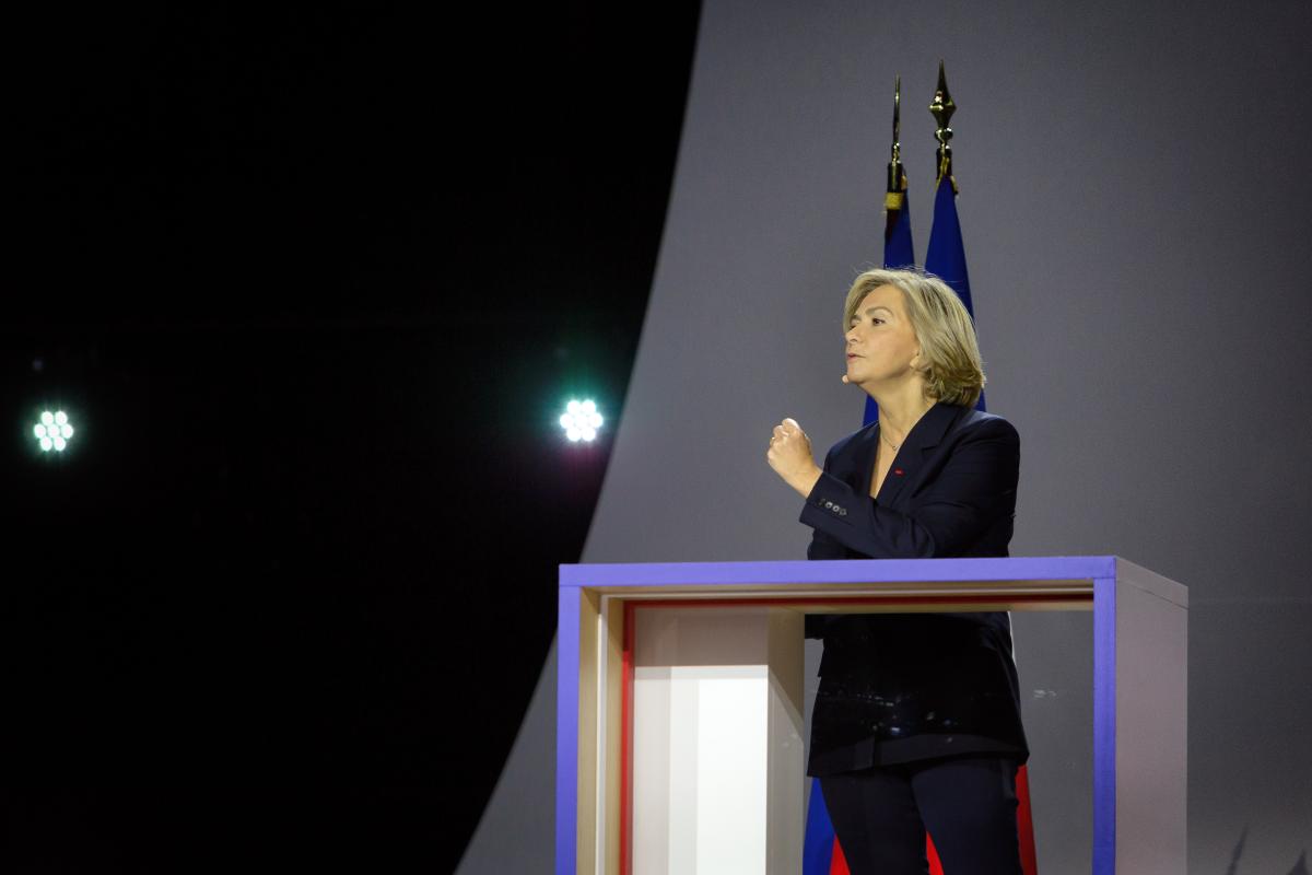 France, Paris, 2022-002-13. Valerie Pecresse takes the floor. Valerie Pecresse meeting at the Paris Zenith. Photograph by Martin Noda / Hans Lucas