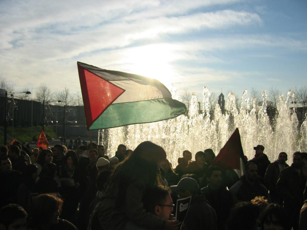 Fin de manif, le drapeau palestinien flotte à Brest ce 10 janvier 2009