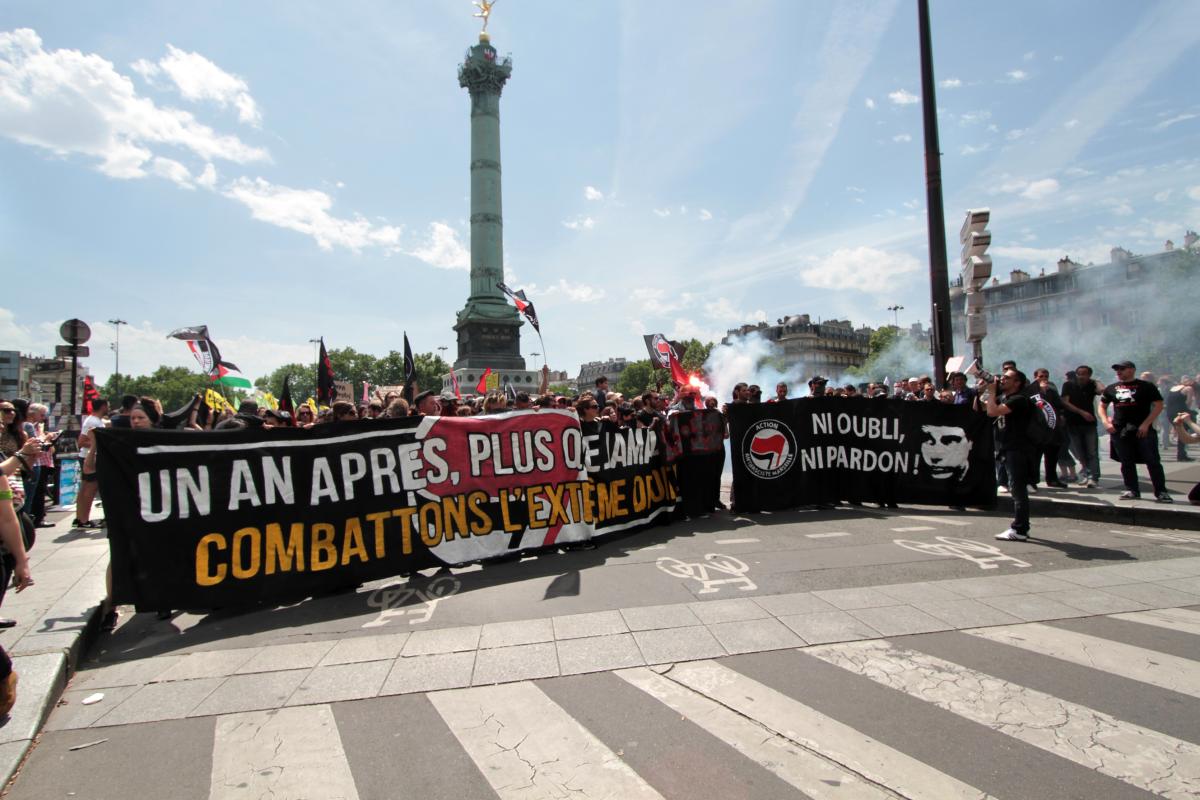 Le 7 juin 2014, à Paris, Un an après l'assassinat de Clément Méric, manifestation unitaire contre l'extrême droite.