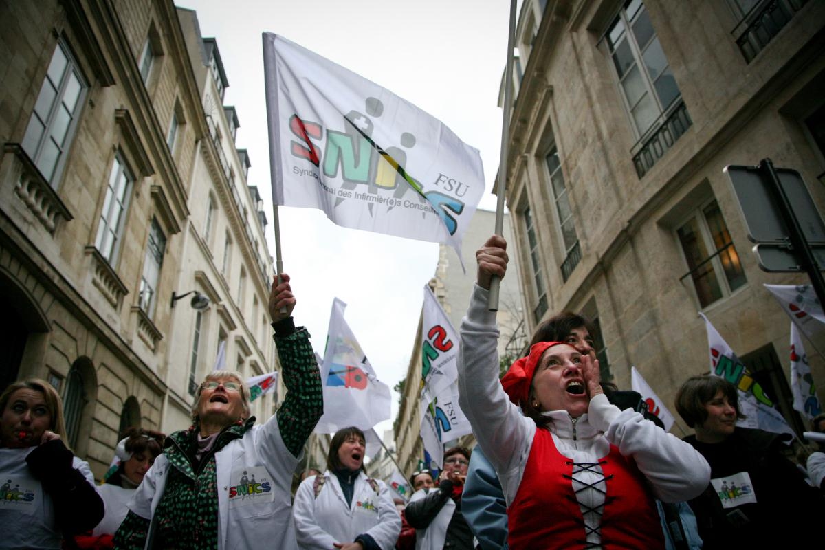 Paris, le 10 janvier 2012. Pour la cinquième fois, le Syndicat National des Infirmier(e)s et Conseiller(e)s de Santé (SNICS) appelle à une manifestation nationale pour réclamer la revalorisation en catégorie A des infirmières scolaires. 1500 personnes y participeront.