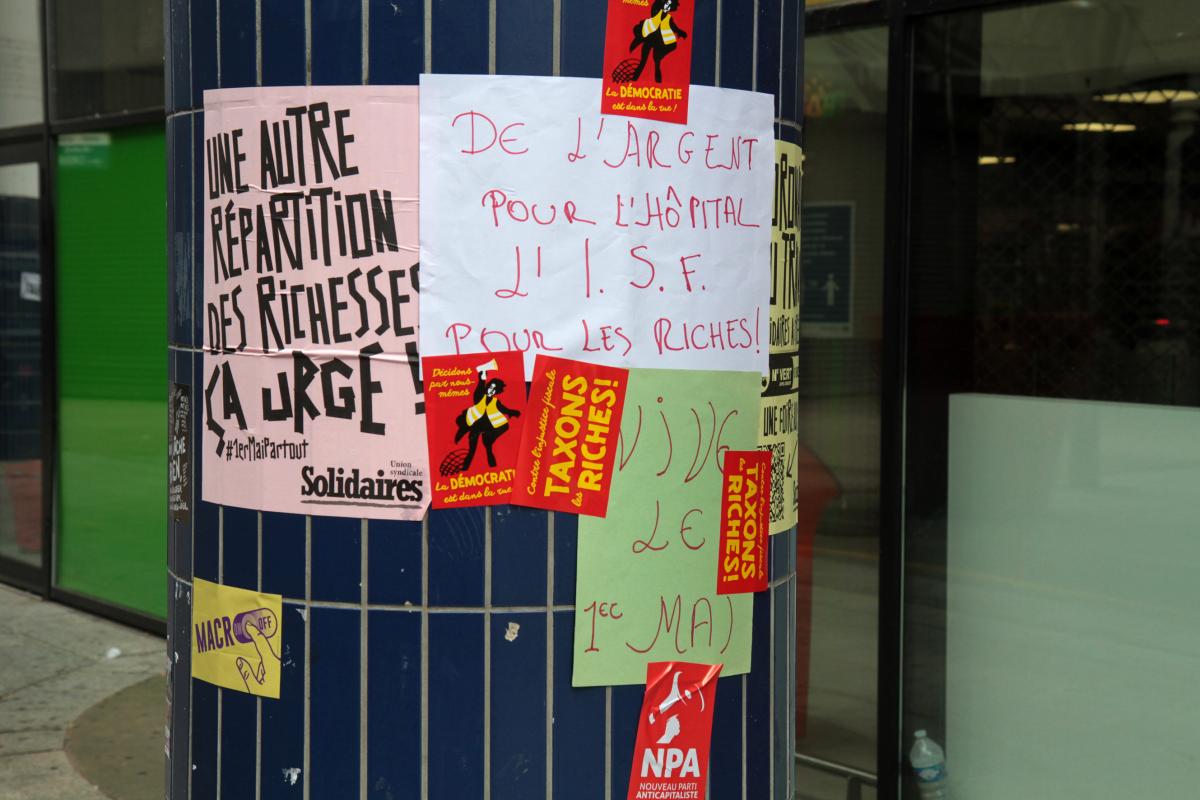Saint-Denis, le 1 mai 2020, rassemblement devant le magasin Carrefour qui a vu deux de ses employés, Aïcha et Tahar, décéder du Covid 19. Rassemblement qui respectait les règles de la distentiation imposées par la lutte contre la pandémie.