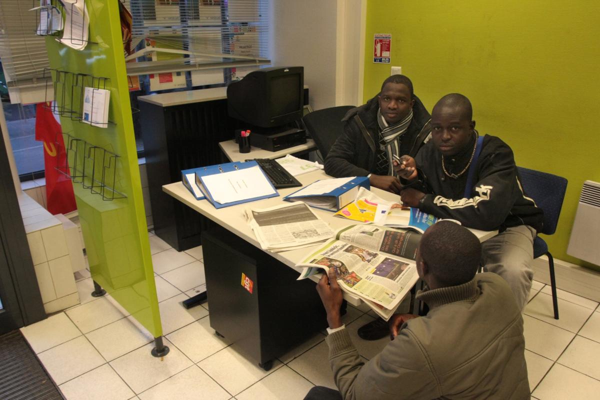 2 novembre 2009. L'agence d'intérim RANDSTAD, située au 80 boulevard Magenta à Paris, est occupée depuis plusieurs jours par des sans-papiers en grève pour leur régularisation. Le personnel continue de travailler mais l'accueil est assuré par les grévistes qui occupent une partie des locaux.