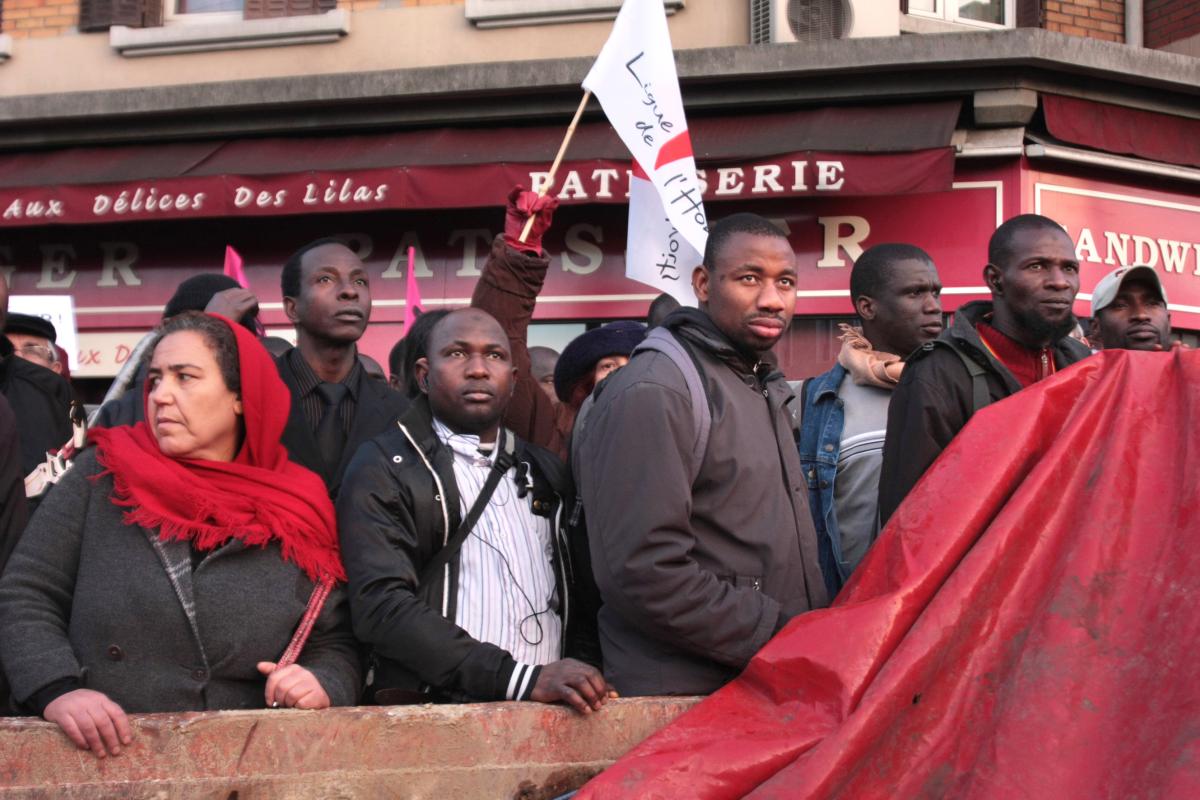 7 novembre 2009 Paris manifestation des collectifs sans-papiers en grève et des soutiens du 19°- 20° de la rue d'Avron au chantier RATP occupé de la Porte des Lilas