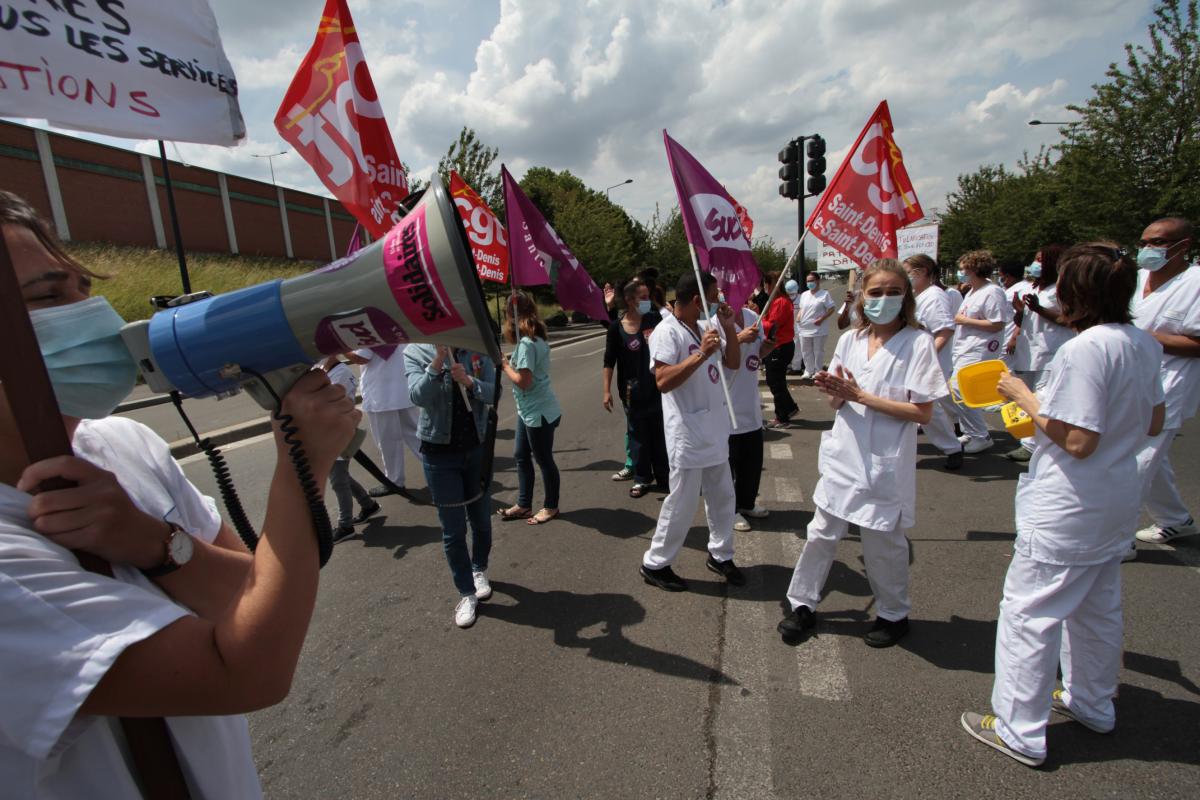 Saint-Denis le 11 juin 2020, devant l'Hôpital Casanova le personnel manifeste pour ses revendications.