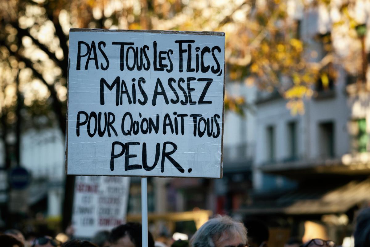 Not all cops, but enough to make us all scared, written on a placardmarch of liberties, Paris, November 28 2020. Photograph by Martin Noda / Hans Lucas