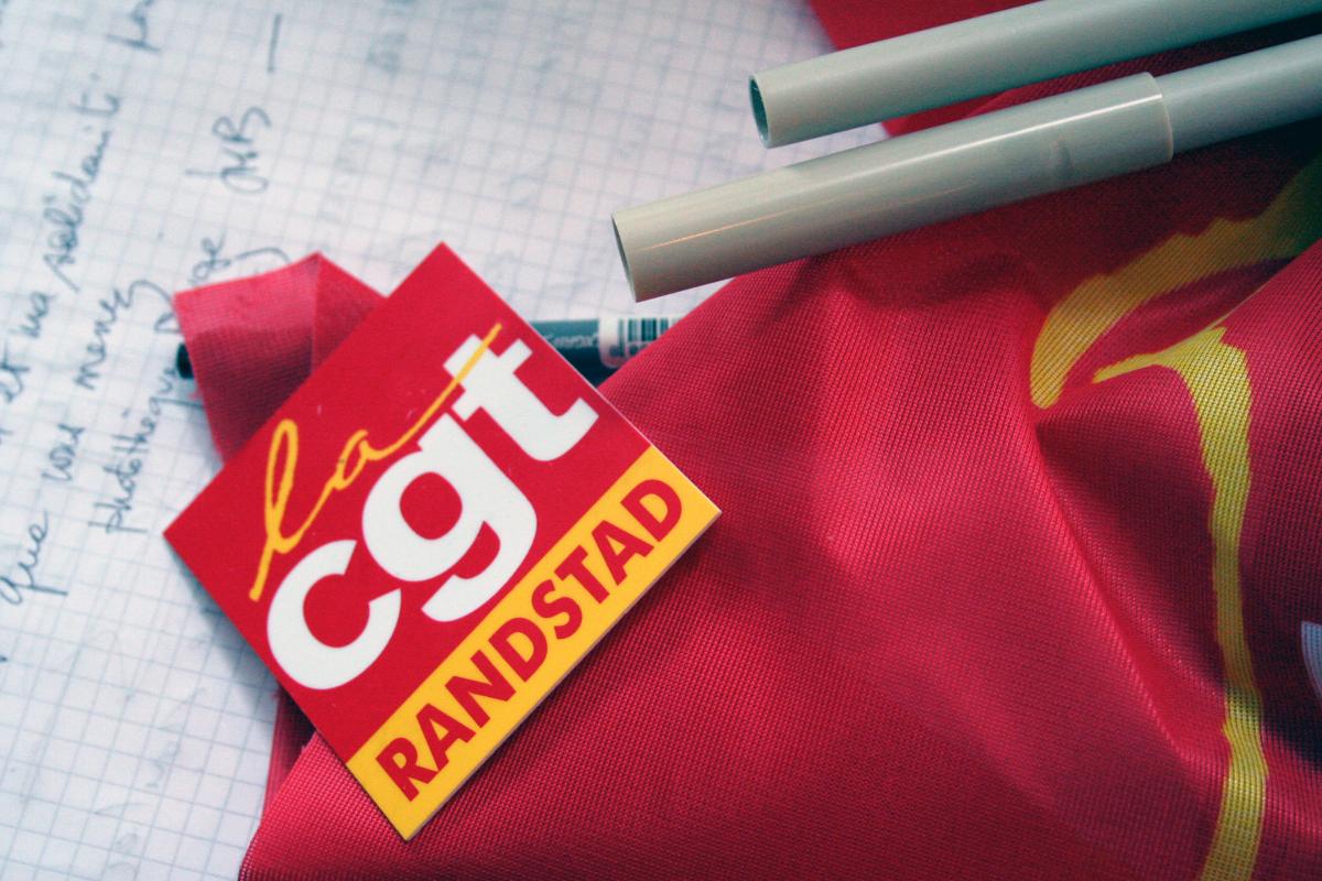 livre d'or, badge et drapeau CGT Randstad