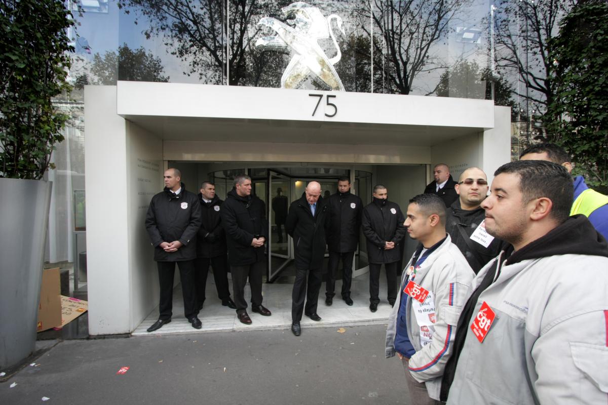 vigiles gardant le siège de PSA