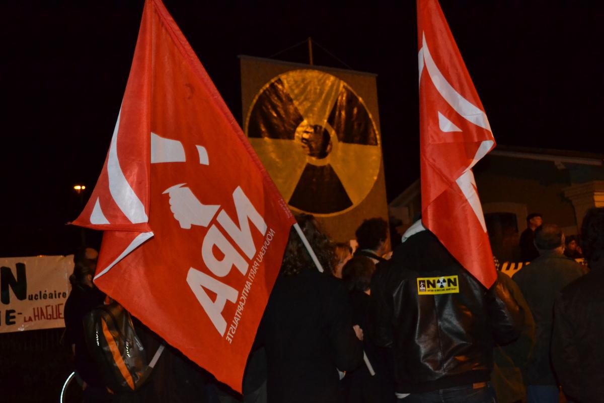 Cortège NPA + signe radioactif en arrière plan