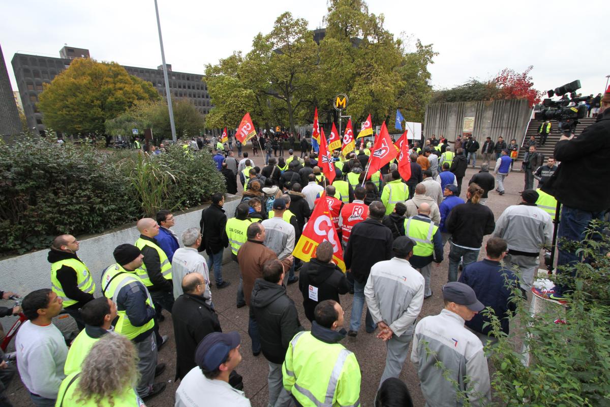 Le 8 novembre 2012, les salariés de PSA Aulnay manifestent en direction de la préfecture de Bobigny où se tient une réunion tripartite entre la direction de PSA une délégation des syndicats et le préfet.