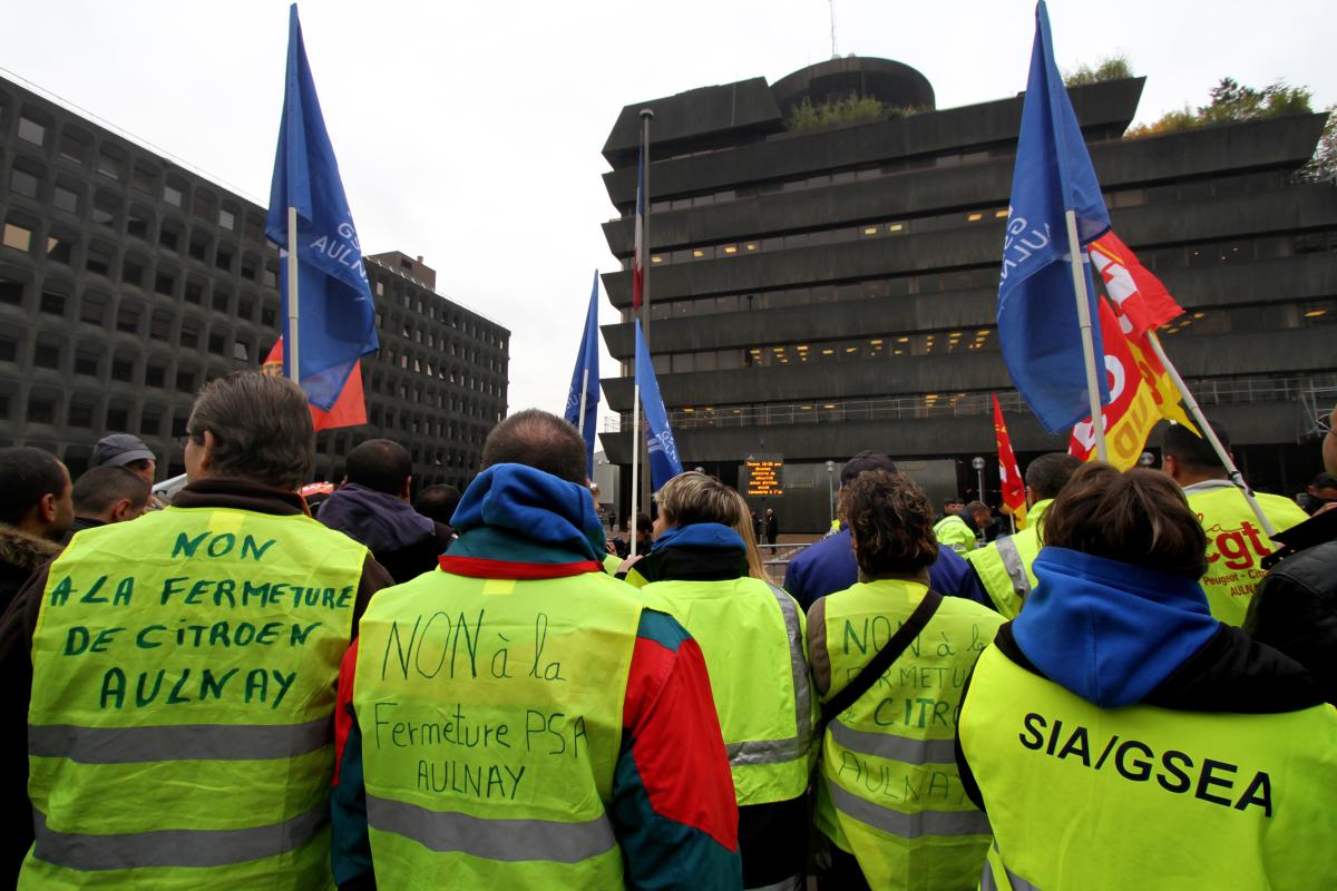 Le 8 novembre 2012, les salariés de PSA Aulnay manifestent en direction de la préfecture de Bobigny où se tient une réunion tripartite entre la direction de PSA une délégation des syndicats et le préfet.