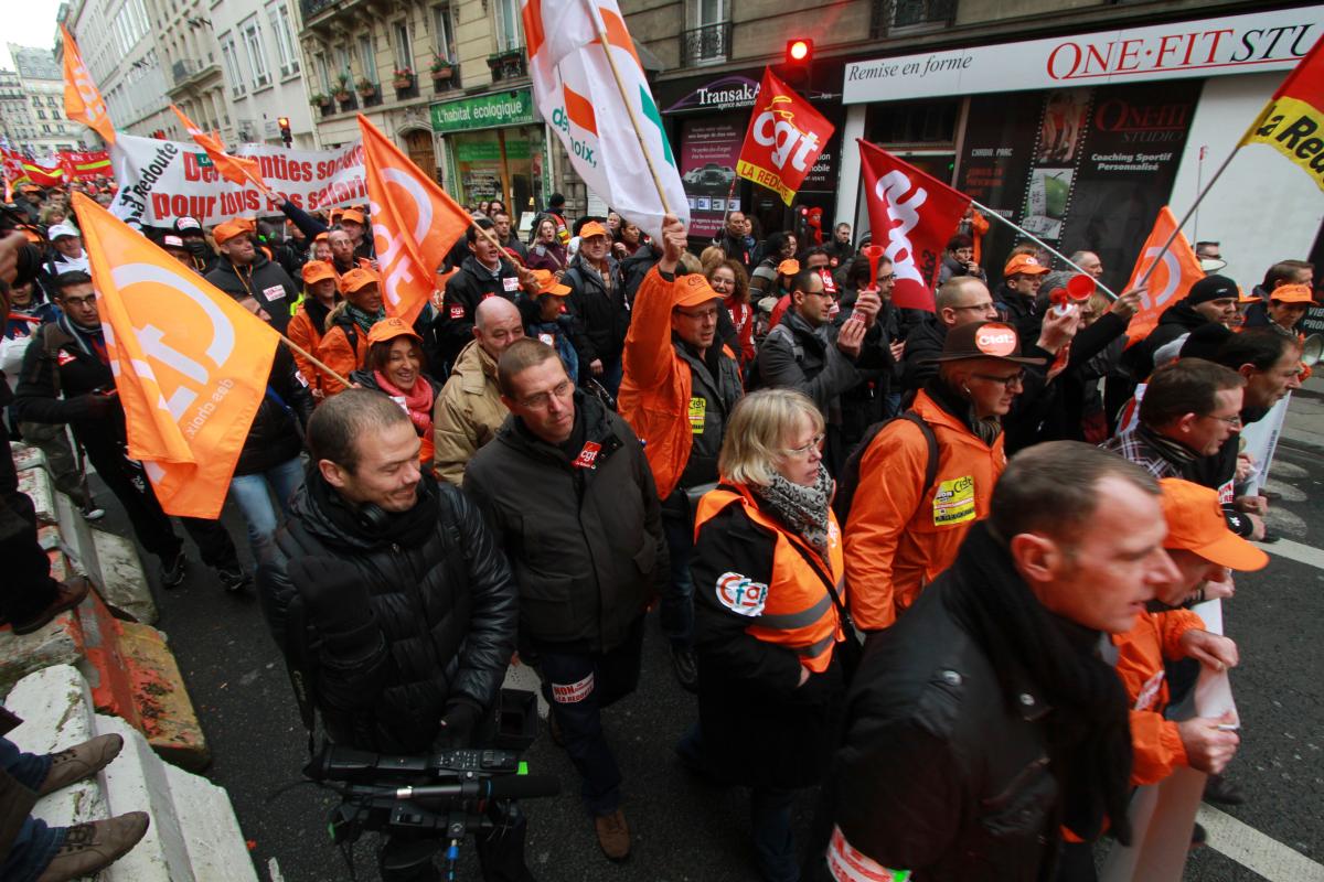 Le jeudi 21 novembre 2013, les salariéEs de La Redoute manifestent à Paris contre les licenciements annoncés, en direction du siège du groupe Pinault