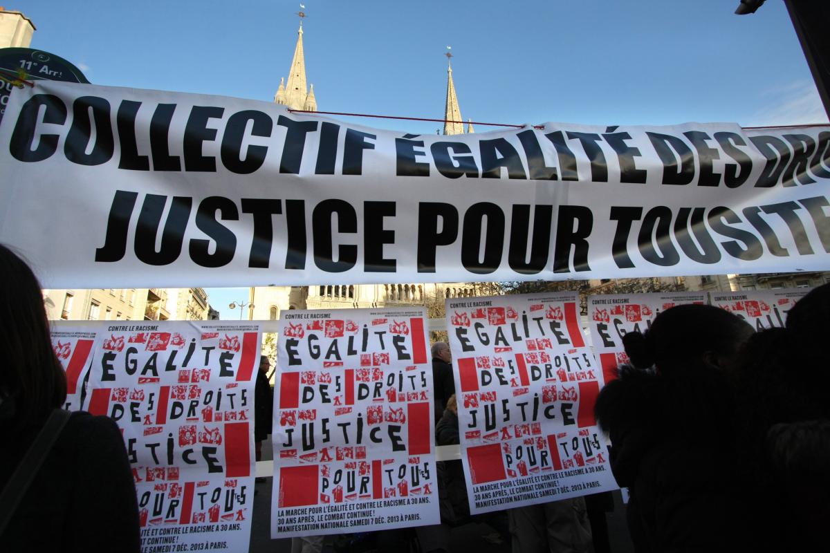 Point fixe du collectif égalité des droits, justice pour tous appelant à la manifestation du 7 décembre, 30 ans après la marche de l'egalité et contre le racisme