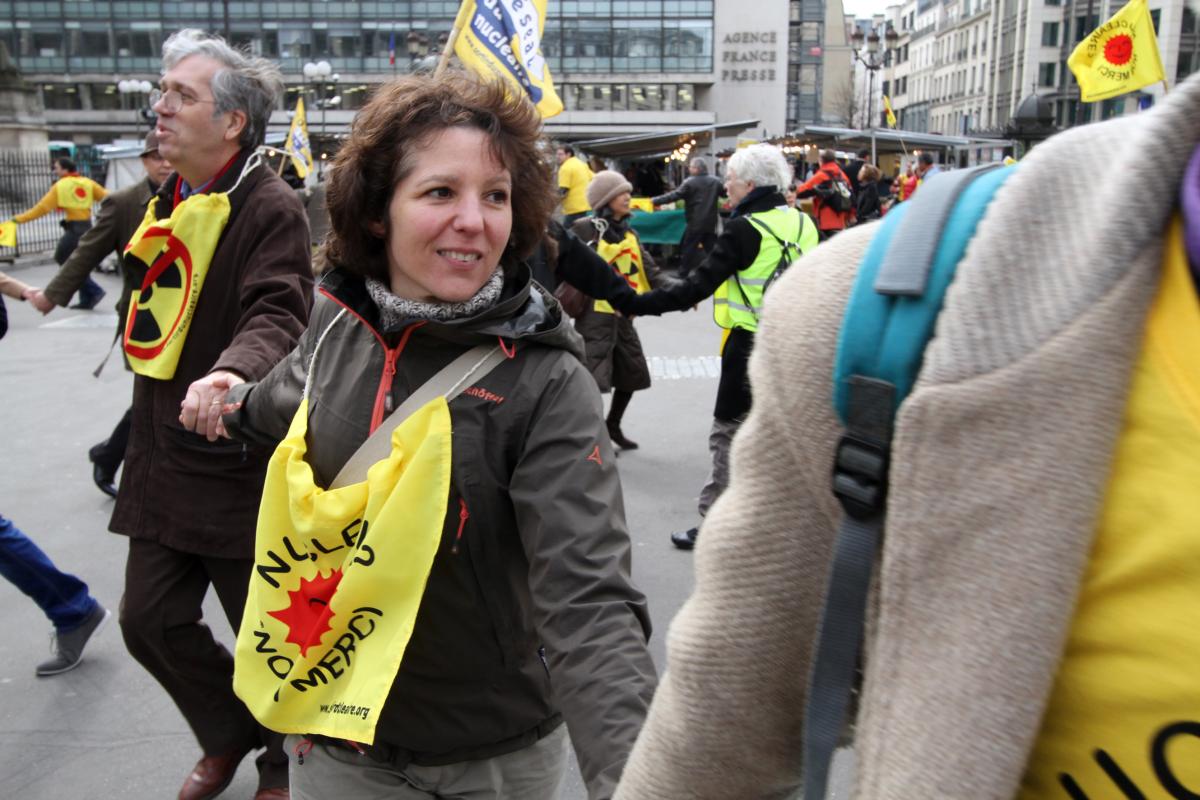 Mardi 5 mars 2013, Paris, conférence de presse de Sortir du Nucléaire et mini chaine humaine devant la Bourse pour annoncer la mobilisation du samedi 9 mars 2013