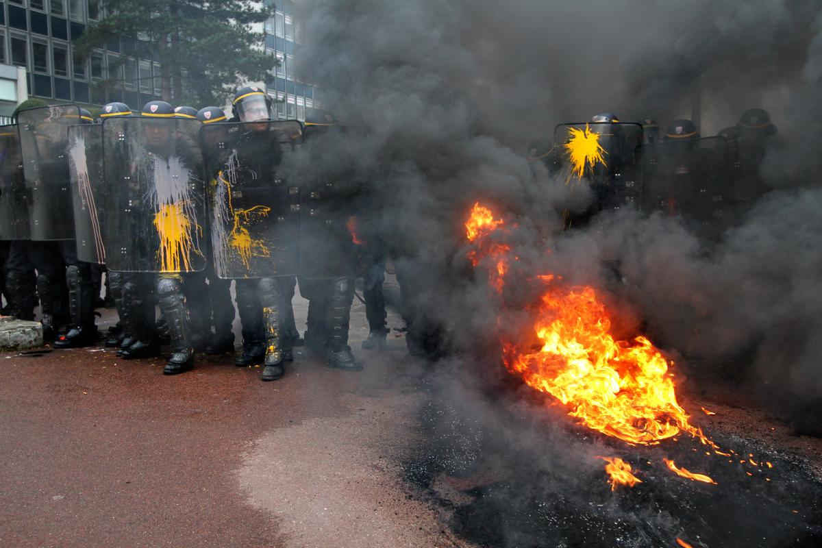Le 7 mars 2013, rassemblement des salariés de Goodyear devant le siège de l'entreprise à Rueil Malmaison, à l'occasion d'une réunion du CE où doit être rendu le rapport des experts sur la situation du groupe.