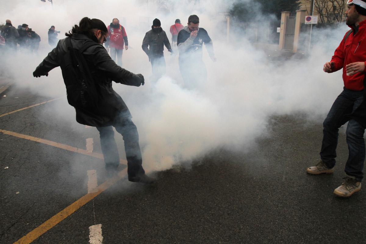 Le 7 mars 2013, rassemblement des salariés de Goodyear devant le siège de l'entreprise à Rueil Malmaison, à l'occasion d'une réunion du CE où doit être rendu le rapport des experts sur la situation du groupe.