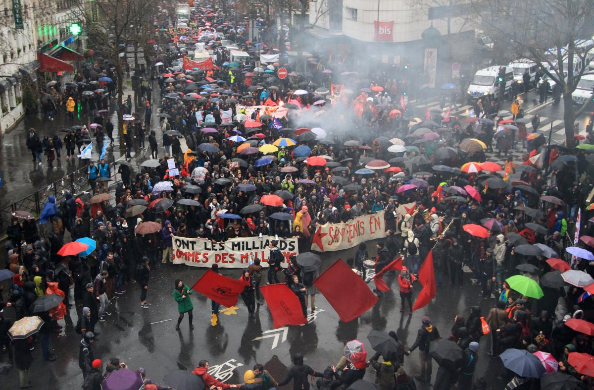 Paris le 31 mars 2016, manifestation contre la loi travail, de la place d'Italie à la Nation, sous une pluie battante.