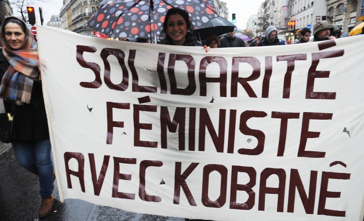 Banderole solidarité Féministe avec Kobanê