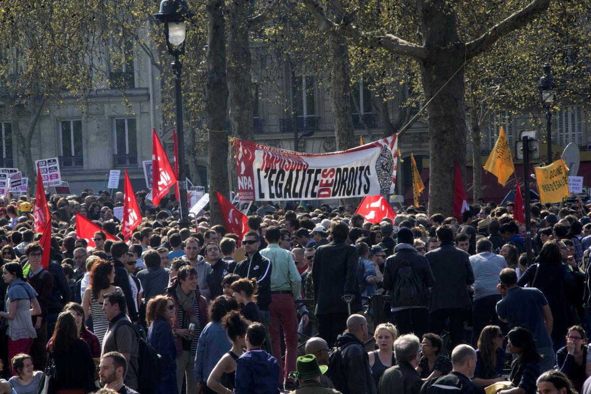 Rassemblement pour l'égalité des droits - Banderole NPA
