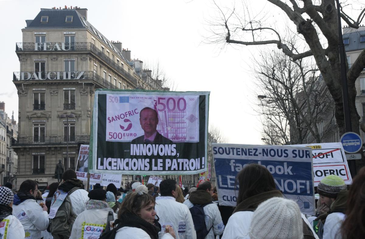 Manifestation nationale des SANOFI à Paris devant le siège du groupe, rue de la Boëtie, jusqu'à la bourse, en passant par la gare St.Lazare et l'Opéra.