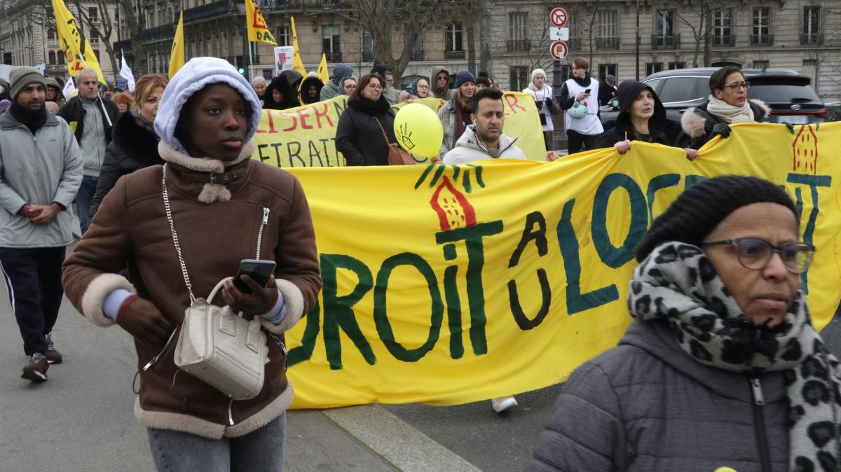 Paris le 28 janvier 2023, manifestation contre la loi Kasbarian-Bergé qui criminalise les squatteurs, les locataires endettés, les mal-logés.