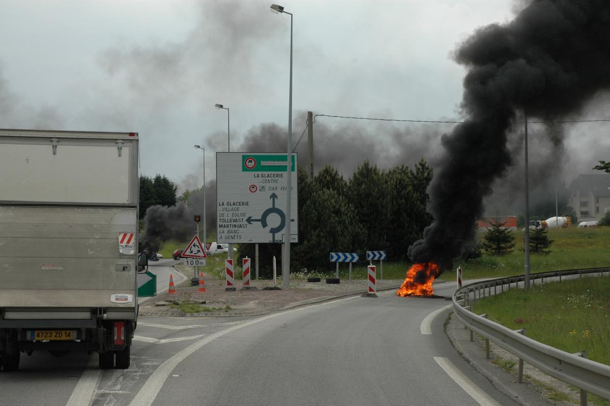 Blocage de la RN 13 par les pêcheurs Cherbourgeois.