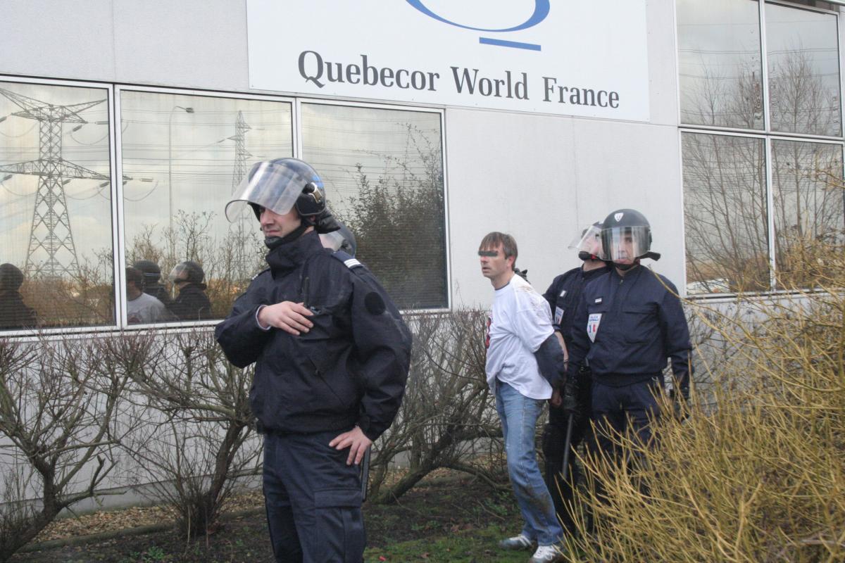 arrestation d'un manifestant devant le siège de Quebecor