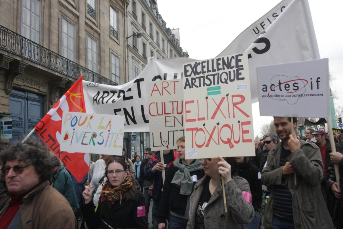 Lundi 27 mars 2010 manifestation à Paris,du Palais royal au Sénat où la loi est en discussion, de tous les acteurs de la culture contre la réforme des collectivités territoriales qui coupent les budgets